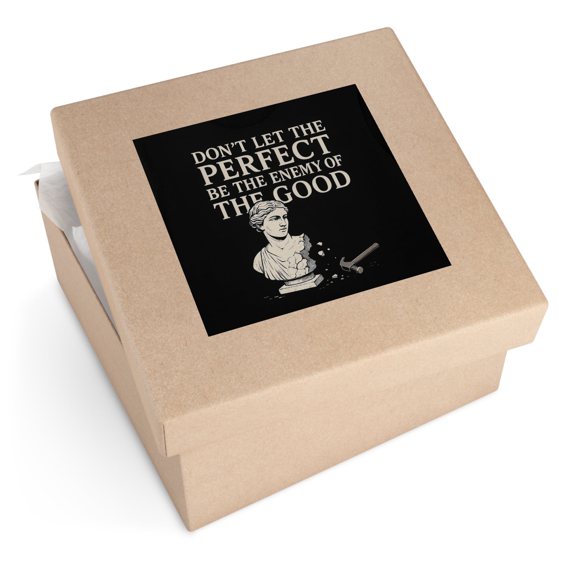Enemy of the good - Square Stickers, Motivational Art Decals, Unique Gifts for Students, Office Decor, Self-Improvement Reminder