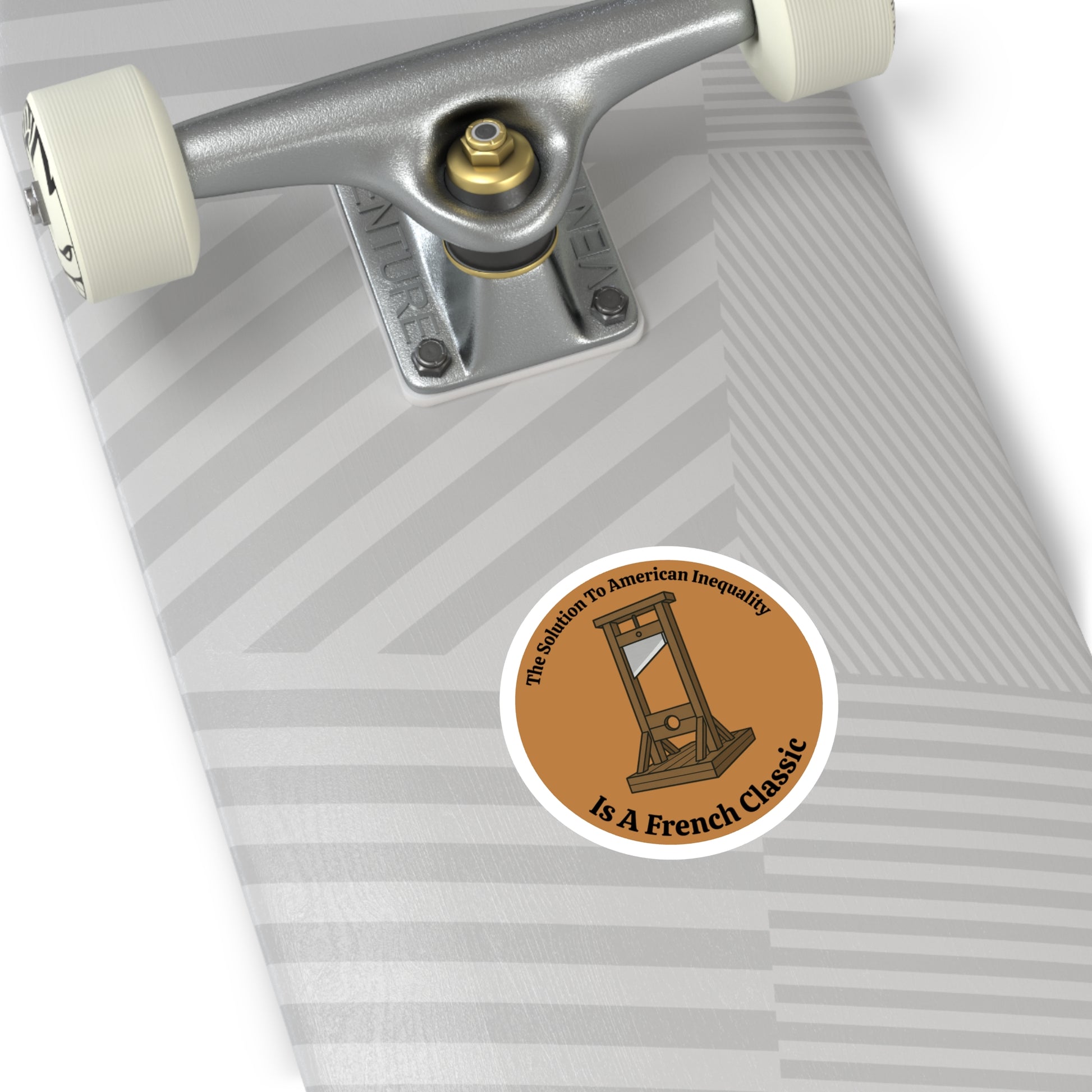 This sticker slices through performative progress like a guillotine through powdered wigs. Not a call to violence—just a vintage reminder that “eat the rich” was once more than a meme.