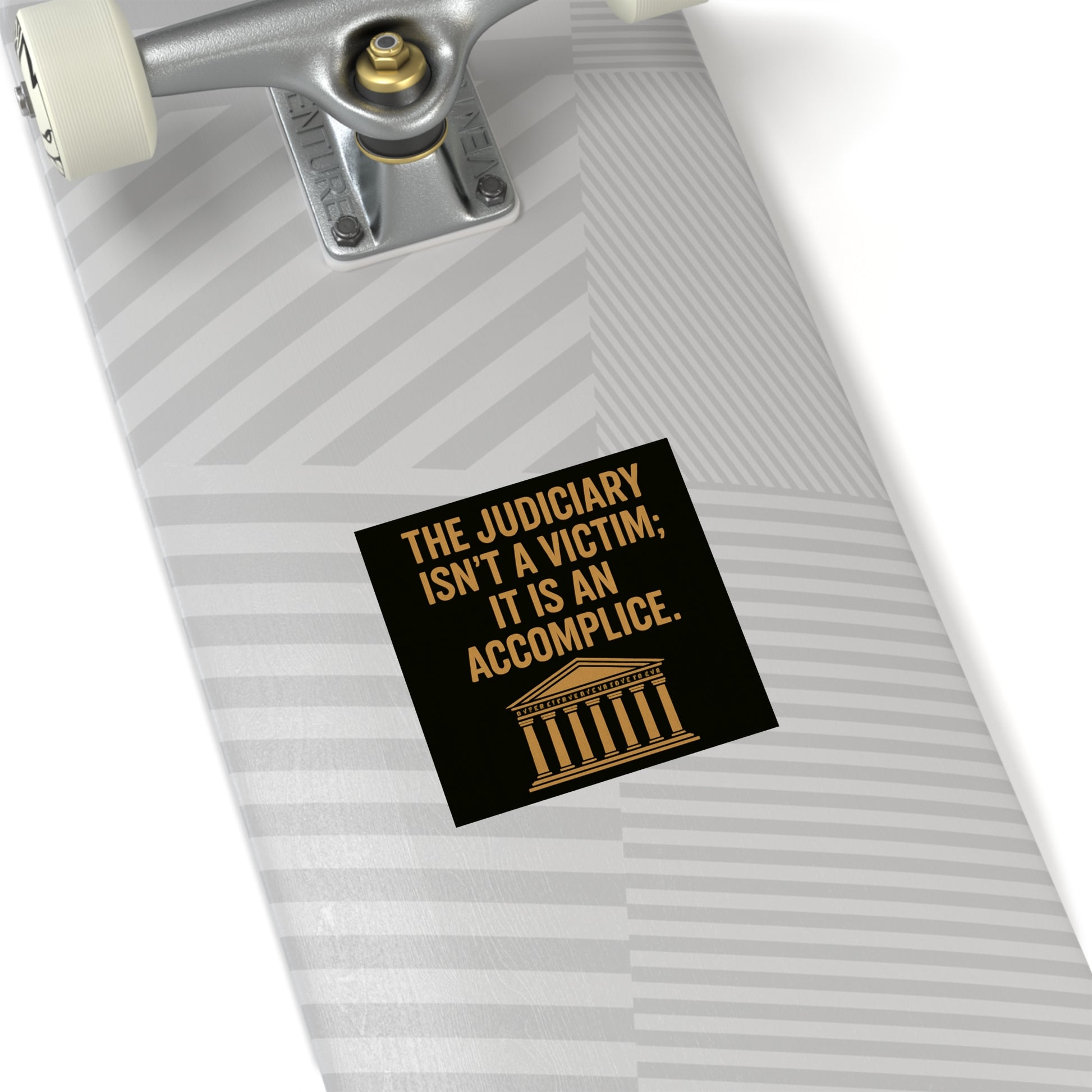 This sticker rips off the blindfold and flips the gavel. It calls out what polite society won’t: that behind every unjust law, every crooked ruling, and every billionaire bailout, there’s a black robe nodding in agreement.